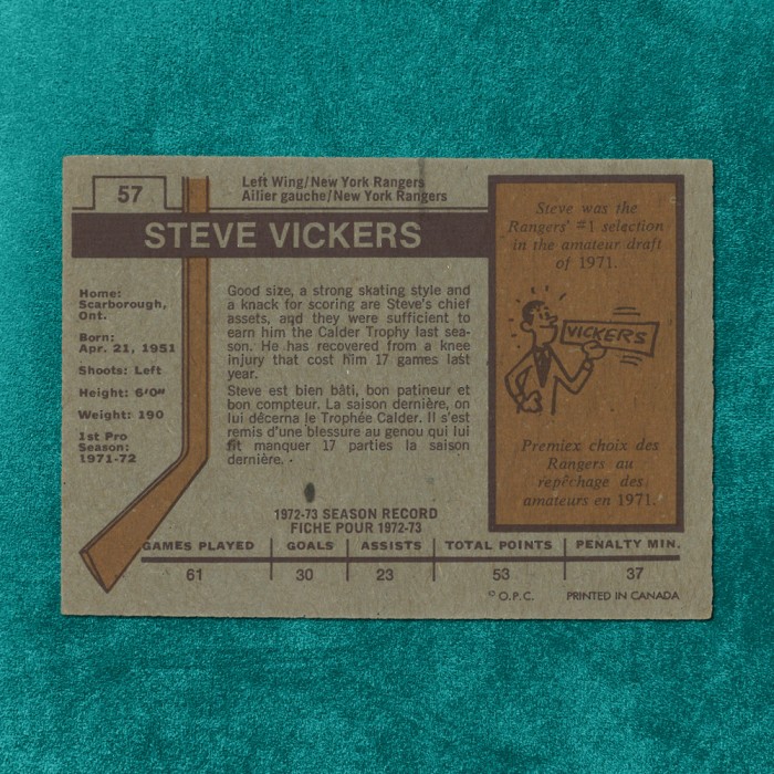Balises: Carte Sportive, Hockey, Steve Vickers #57